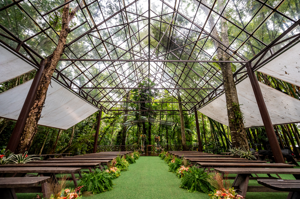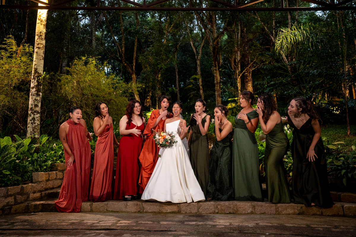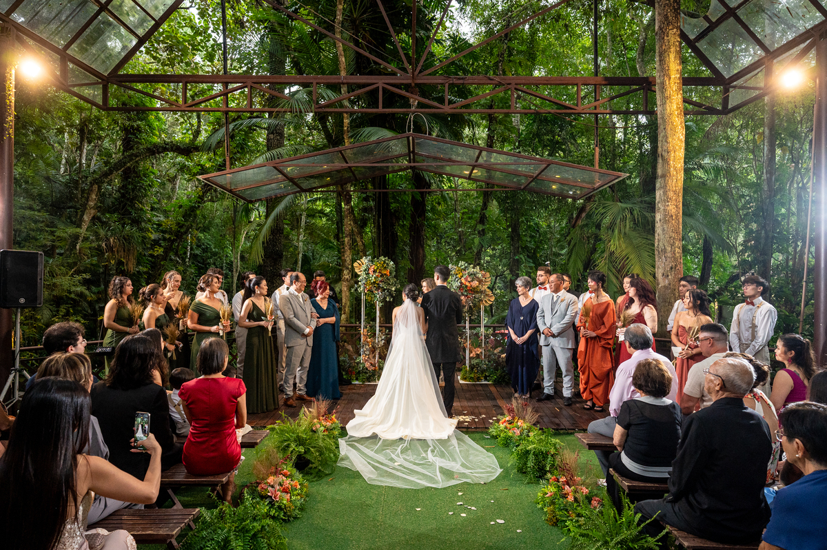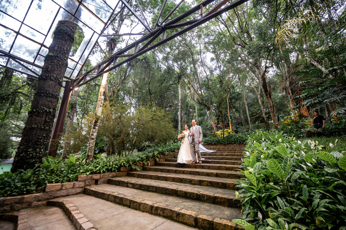 O cenário escolhido foi a Casa Giardino em Mogi das Cruzes, um lugar cercado de natureza, que combinou perfeitamente com a vibe deles.